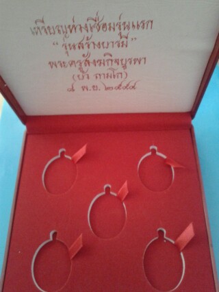 กล่องใส่พระ รุ่นห่วงเชือม ชุดห้าเหรียญ หลวงปู่บัว ถามโก