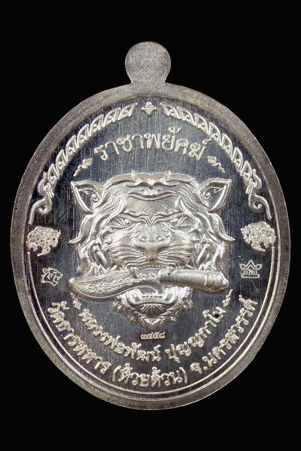 เหรียญราชาพยัคฆ์ (เสือ 2 ป๋อง สุพรรณ) เนื้อเงินลงยา หลวงพ่อพัฒน์ วัดห้วยด้วน นครสวรรค์