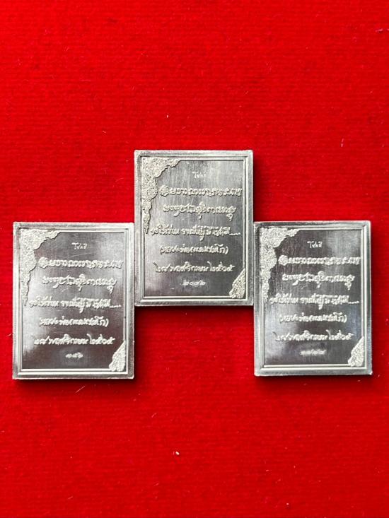 รูปถ่ายอัศวินขาปิ่นโต หลวงพ่อเกษม เขมโก จังหวัดลำปาง หลังอลูมิเนียม ด้านบนตอกโค๊ต โชคดี (1กระดาน 3 รูป) |