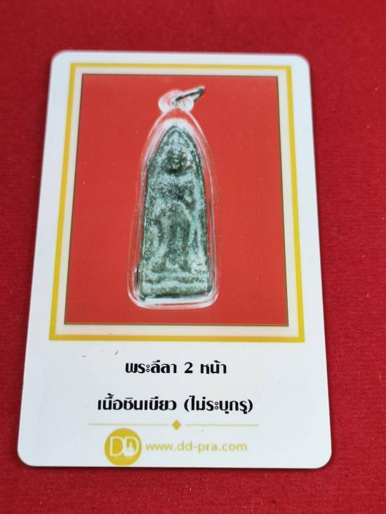 พระลีลาสองหน้า เนื้อชินเขียว เลี่ยมพร้อมใช้ พร้อมบัตรรับรอง |