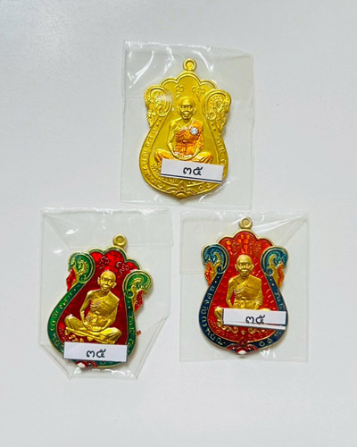 วัดใจ เหรียญเลื่อนสมณศักดิ์47 หลวงพ่อคูณ วัดบ้านไร่ จ.นครราชสีมา เนื้อทองทิพย์ลงยา 3 เหรียญ เลข35