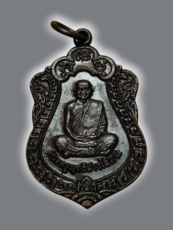 A6922.เหรียญเสมา พระครูพุทธิสารโสภณ วัดตากวน จ.สุรินทร์ ที่ระลึกเททอง หล่อหลวงพ่อพันธุ์ เนื้อทองแดงรมดำ ปี2556