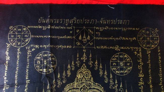 ผ้ายันต์ พระราหูสุริยะประภา-จันทรประภา ไม่ทราบที่ ครับ