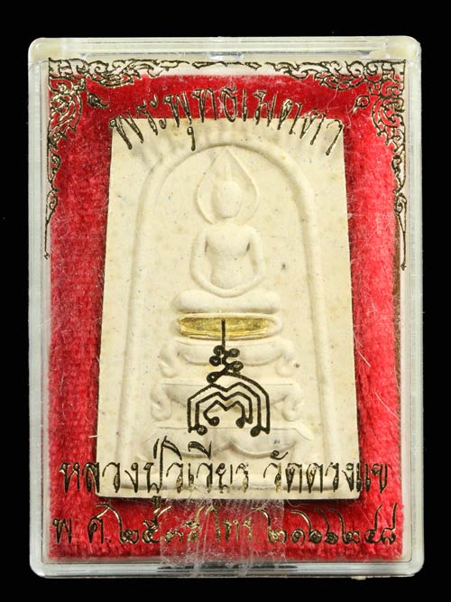 พระสมเด็จพุทธเมตตา ฐานสิงห์ หลังรูปเหมือน หลวงปู่วิเวียร วัดดวงแข ปี 2535 ตะกรุดทองคำ สวยเดิมพร้อมกล่อง