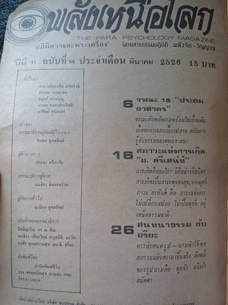 ***หนังสือเก่า พลังเหนือโลก ปี 2526 หน้าปกหลวงปู่ทิม อิสริโก และภาพพระเกจิหลายรูป ด่านใน ***หนังสือสภาพเก่ามีคราบเลอะ *** |