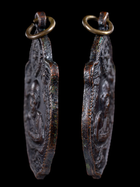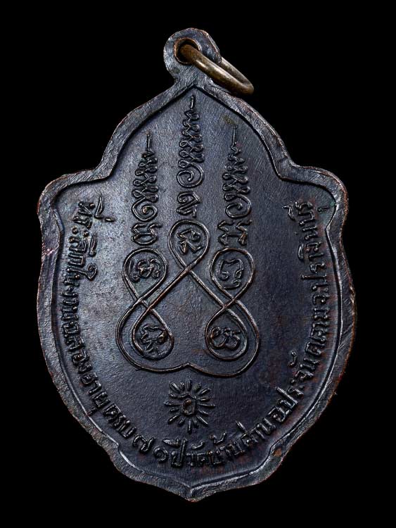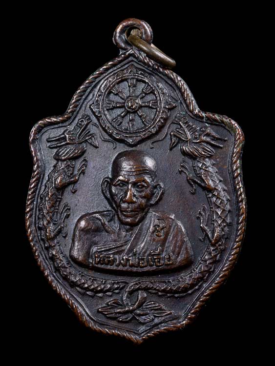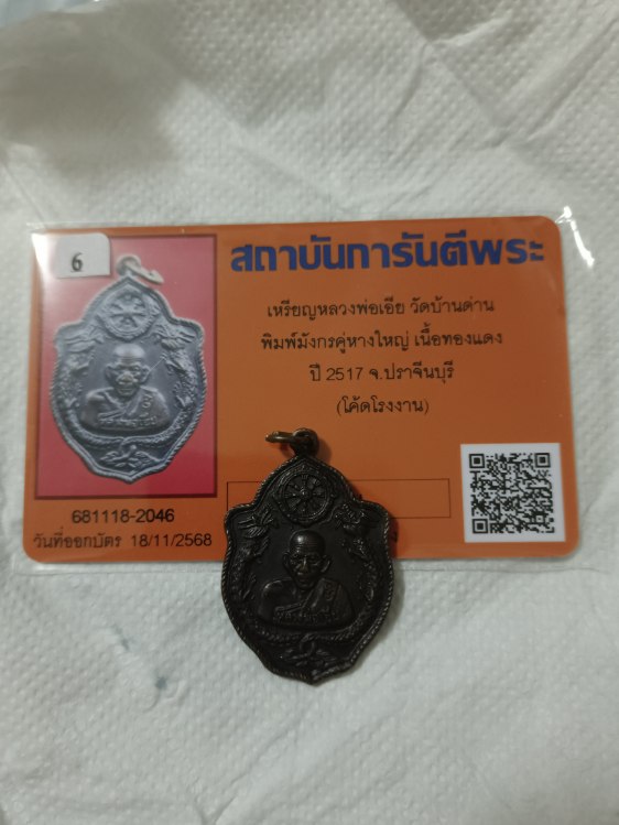เหรียญหลวงพ่อเอีย วัดบ้านด่าน พิมพ์มังกรคู่หางใหญ่ เนื้อทองแดงรมดำ เดิม ปี 2517 จ.ปราจีนบุรี (โค้ตโรงงาน)ผิวสวยเดิมคับพร้อมบัตรรับรอง