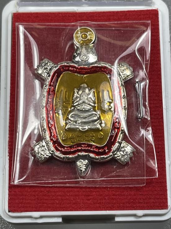 เหรียญพญาเต่าเรือน เมตตา มหาลาภ พระอาจารย์อุทัย วัดวิหารสูง เนื้อเงินลงยา พิมพ์เล็ก