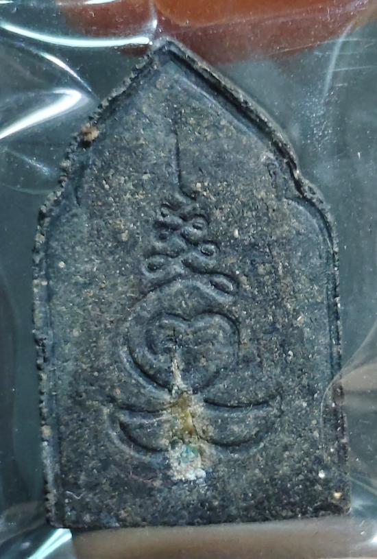 พระปิดตาห้าเหลี่ยม เนื้อดำ หลังฝังตะกรุดทองเหลือง หลวงปู่บัว ถามโก ปี 2541