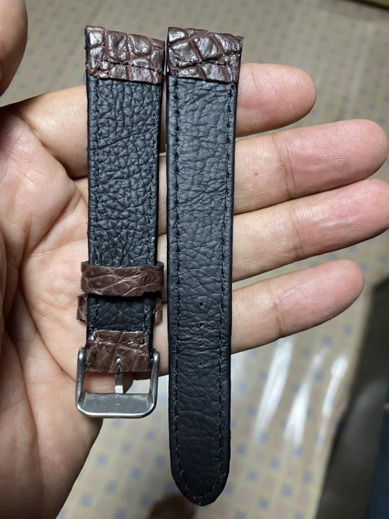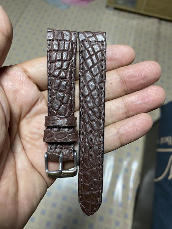 สายนาฬิกาหนังจระเข้แท้ใหม่มือ1บัคเคิลสีเงิน18มิลแฮนเมจ