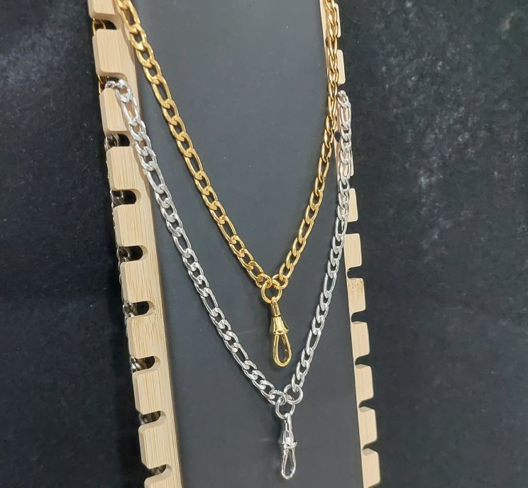 สร้อยสแตนเลส ลายฟิกาโร่ ยาว 26 นื้ว พร้อมสปริงก้ามปูสแตนเลส รับ2เส้น อีกเส้นงานสแตนเลสทองเลเซอร์ |