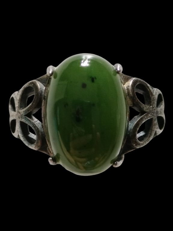 หัวแหวนหยก ( เม็ดใหญ่พิเศษ ยุคต้น หยกก้อนแรก ) ตัวเรือนเนื้อเงินแท้