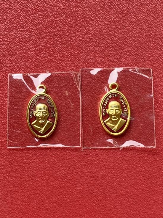 เคาะเดียวแดง เม็ดแตง 2องค์หลวงปู่ทวด รุ่น102ปีอาจารย์ทิม เนื้อชุบทองลงยาสีแดง |