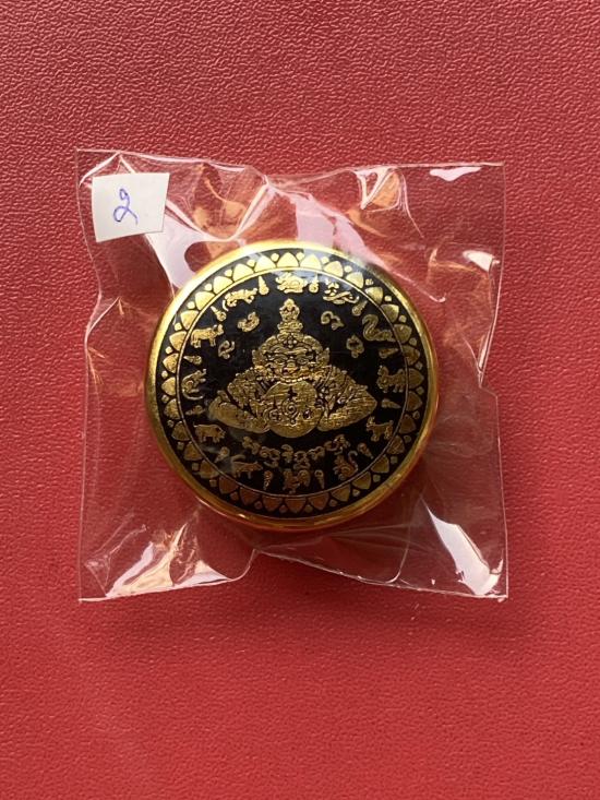 เคาะเดียวแดง สีผึ้งพระราหู รุ่น มงคลจักรวาล เนื้อ โลหะชุบทองลงยาสีดำขอบสีดำ ขนาด3.2ซม |
