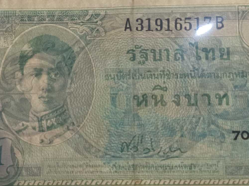 **ธนบัตรรัชกาลที่ 8 แบบที่่ 8 ชนิด 1 บาท โรงพิมพ์ ทิวดอร์ เพลส อินท์ สหรัฐอเมริกา ปี พ.ศ 2489***สภาพผ่านการใช้ มีรอยพับ มีคราบเหลือง*** |