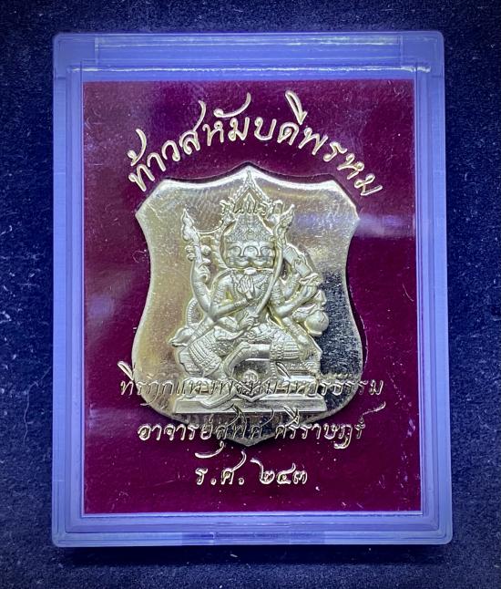 เหรียญพระพรหม อาจารย์สุพิศ ศรีราษฎร์ วัดกลางเหนือ จ.สมุทรสงคราม รุ่นแรก ( เนื้อทองฝาบาตร ) #พรหมแม่กลอง |