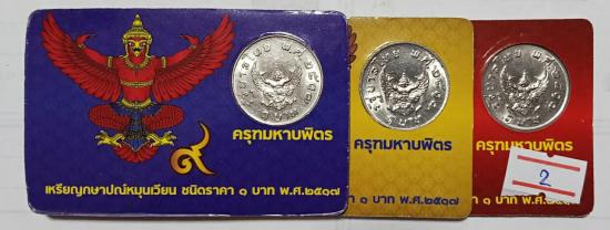 เหรียญ 1 บาท หลังพญาครุฑ เหรียญบาทประสบการณ์ พกติดตัวไว้เป็นมงคล เหรียญสภาพผ่านการใช้งานสวย พร้อมการ์ด สีแดง,สีน้ำเงิน,สีเหลือง จำนวน 3 เหรียญ ครับ #2#