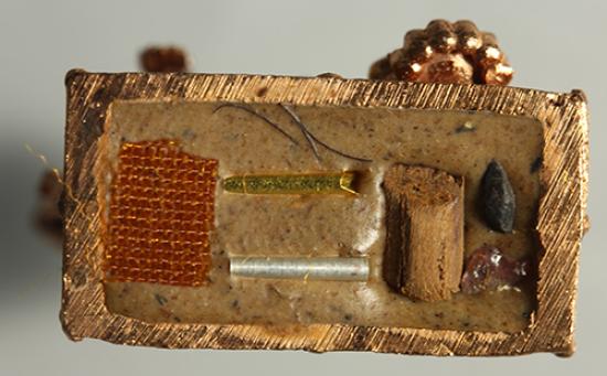 รูปหล่อลอยองค์พระพรหมสี่หน้า วัดห้วยเงาะ รุ่นแรก ใต้ฐานบรรจุด้วยมวลสารเก่า เป็นผงว่านมงคลเก่าเก็บ ตั้งแต่สมัยอดีตเจ้าอาวาสองค์ก่อนนำมาใส่ไว้ในโอ่งตั้งอยู่ในโบสถ์วัดห้วยเงาะ ผ่านพิธีพุทธาภิเษกมาแล้วมากมายจนนับไม่ถ้วน เส้นเกศา จีวร ตะกรุดเงินและทองคำ พลอยทับทิม ไม้ตะเคียนลอดโบสถ์อายุร้อยกว่าปีของวัดม่วงหมังผ่านพิธีพุทธาภิเษกมานับไม่ถ้วนเช่นกัน