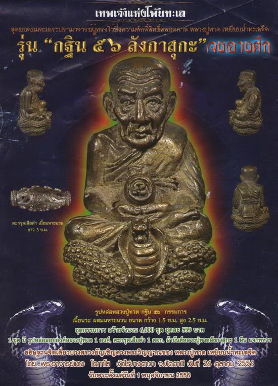 หลวงปู่ทวดรุ่นจงอางศึก กฐิน ๕๖ ลังกาสุกะ พระอาจารย์แดง วัดไร่ บางตาวา ปัตตานี เป็นรูปหล่อลอยองค์โบราณมีขี้เบ้าหลวงปู่ทวด เนื้อนวโลหะผสมมหาชนวน องค์ สูง 2.8 ซม ปี 2556 พร้อมเลี่ยม นำไป ใช้ได้เลยครับ