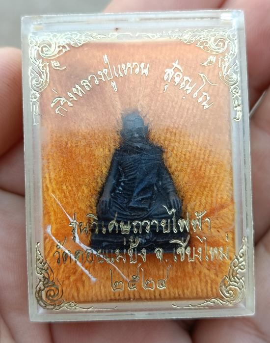 รูปหล่อเนื้อทองแดง รุ่น วิเศษถวายไฟฟ้า หลวงปู่แหวน สุจิณฺโณ วัดดอยแม่ปั๋ง พศ.2524 |