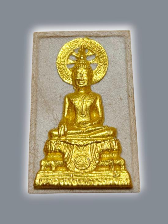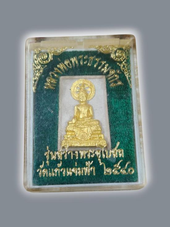 A6952.พระเนื้อผง หลวงพ่อพระธรรมจักร รุ่นสร้างพระอุโบสถ องค์ทาทอง วัดแก้วเเจ่มฟ้า ปี 40 กล่องเดิม