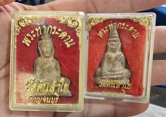 เคาะเดียวแดง 2 องค์พระท่ากระดานวัดต้นลำใย จ.กาญจนบุรี พิมพ์ ใหญ่-เล็ก หลังทุบ นิยม ยุคแรก พร้อมกล่อง