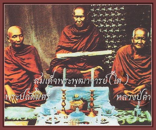 สมเด็จพิมพ์ปรกโพธิ์ เนื้อผงใบลาน หลวงปู่คำ วัดอัมรินทร์ (วัดโบสถ์น้อย) หลวงพ่อองค์ที่นั่งอยู่ด้านขวาพระสมเด็จพระพุทธาจารย์โต (สมเด็จวัดระฆัง) พระที่ท่านสร้างมีจำนวนไม่มาก พระพิมพ์นี้จะคล้ายๆกับ สมเด็จปรกโพธิ์ (ปิลันทร์)