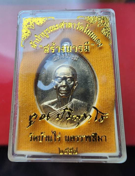 เหรียญผ้าป่าบูรณะศาลาวัดโนนแดง "สร้างบารมี" เนื้อฝาบาตร หมายเลข ๕๓๘ หลวงพ่อคูณ วัดบ้านไร่ นครราชสีมา สวย ๆ เคาะเดียวเบาๆครับ
