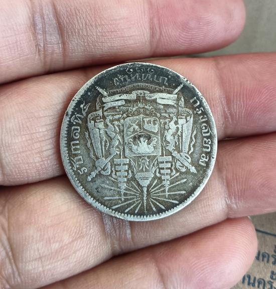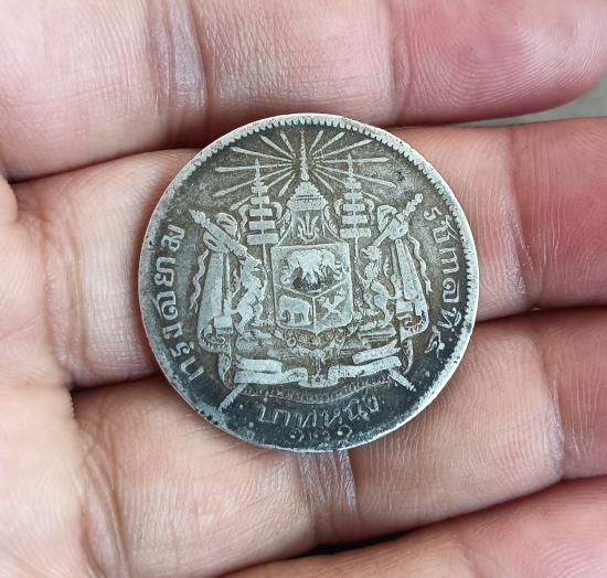 เหรียญบาทหนึ่ง เนื้อเงิน ร.5 หลังตราแผ่นดิน ร.ศ.121