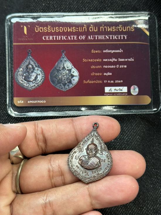 เหรียญ หยดน้ำ หลวงปู่ทิม วัดละหารไร่ สภาพสวย พร้อมบัตร
