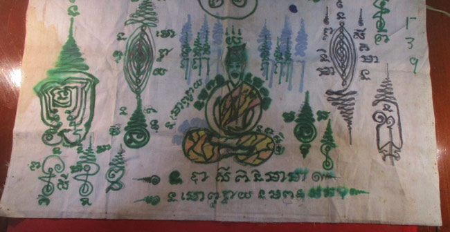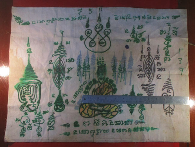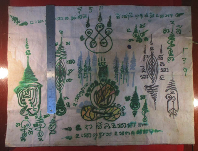 ผ้ายันต์ ไม่ทราบที่ จารยันต์ด้วยมือ ยันต์สวย ครับ (พระบ้าน ครับ) |