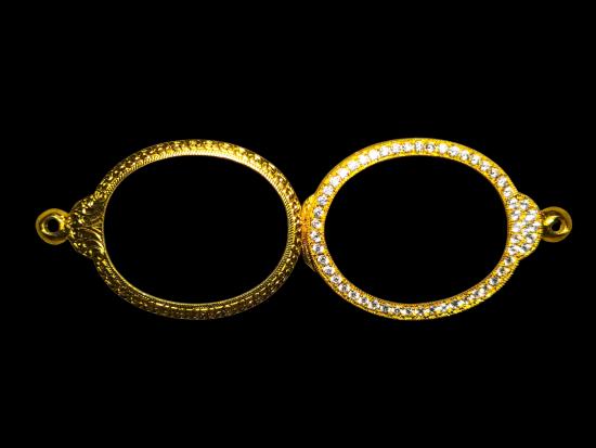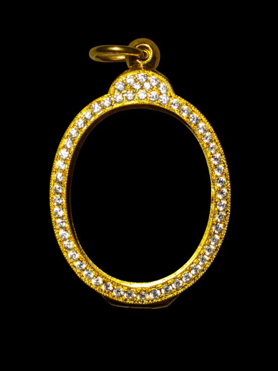 กรอบพระ กรอบทองอิตาลี ทรงรูปไข่มาตรฐาน กรอบด้านในขนาด 3.5 x 2.8 ซม. |