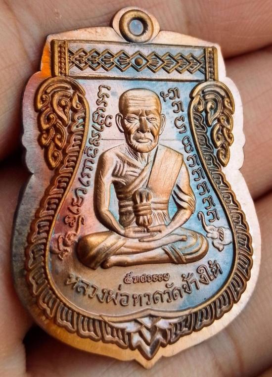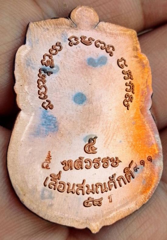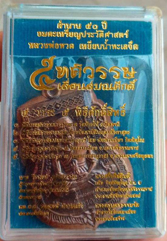 เหรียญเลื่อนสมณศักดิ์ หลวงปู่ทวดปี 58 เนื้อชนวนไม่ตัดปีกหลังกึ่งเรียบ (ชุดเนื้อเงินหน้ากากทองคำ) ตอกนัมเบอร์ 911 พร้อมกล่องเดิม สภาพสวย