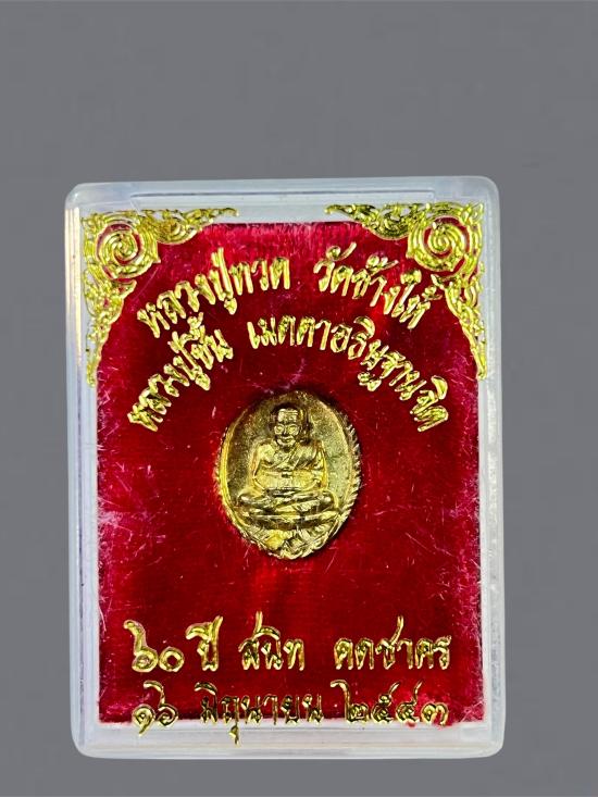 เหรียญหลวงปู่ทวด เปิดโลก หลวงปู่ชื้น วัดญาณเสน อยุธยา พิมพ์นิยม ๖๐ ปี43 เนื้อทองผสม ตอกโค๊ตด้านหลัง สภาพเดิมๆสวยมาก พร้อมกล่องเดิม