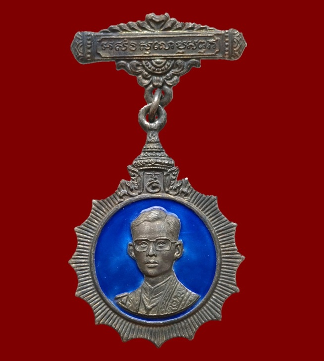เข็มกลัดเทิดพระเกียรติ ร.9 ครบ 5 รอบ จตุเสมาสมาคม กะไหล่เงินลงยาสีฟ้า