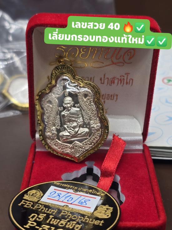 HOT!!! เหรียญรวยทันใจ ปี 2558 เนื้อเงิน เลข 40 เลี่ยมทองคำ หลวงพ่อรวย วัดตะโก