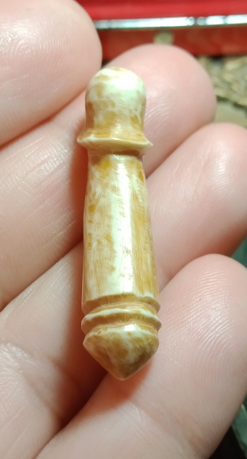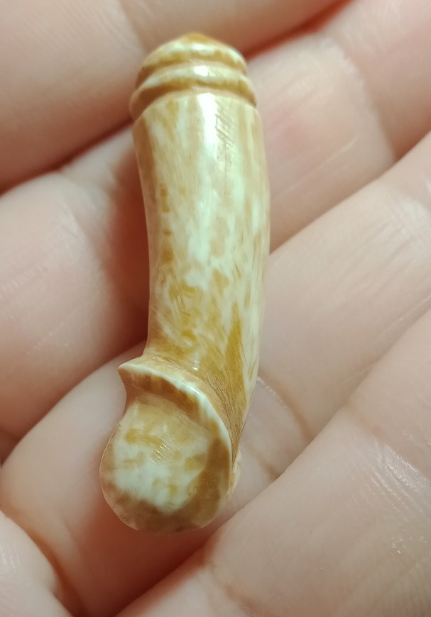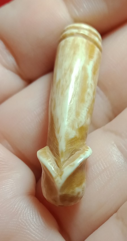 ปลัดขิก ไม่ทราบเนื้อ ไม่ทราบที่ ขนาดยาวประมาณ 4.4 ซม. กว้างประมาณ 1 ซม ที่หัวมีเจาะรู ลึกประมาณ 2 มิล ครับ