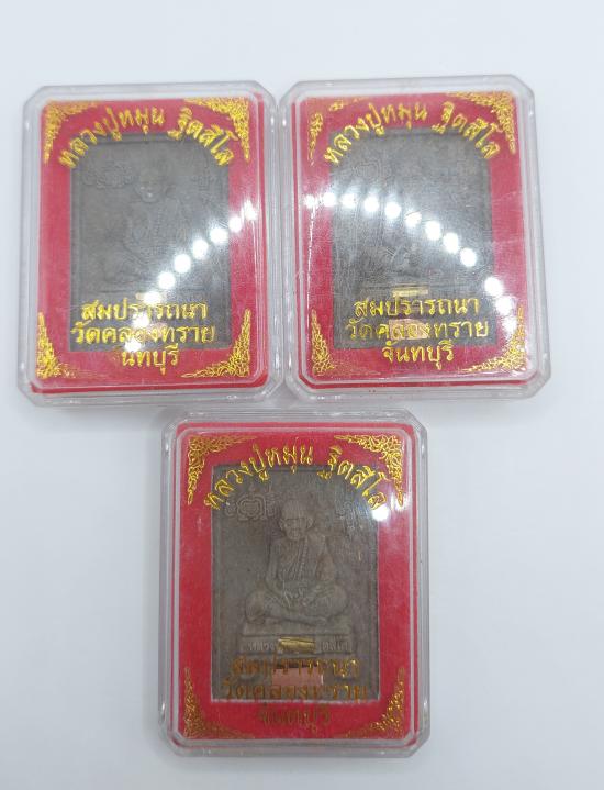 วัดใจ 3องค์เริ่มที่50บาท พระนั่งตั่ง หลวงปู่หมุน รุ่นสมปรารถนา เนื้อไพลดำผสมมวลสารเก่า ออกวัดคลองทราย ฝังตะกรุด 3ดอก สร้างปี 2559 |