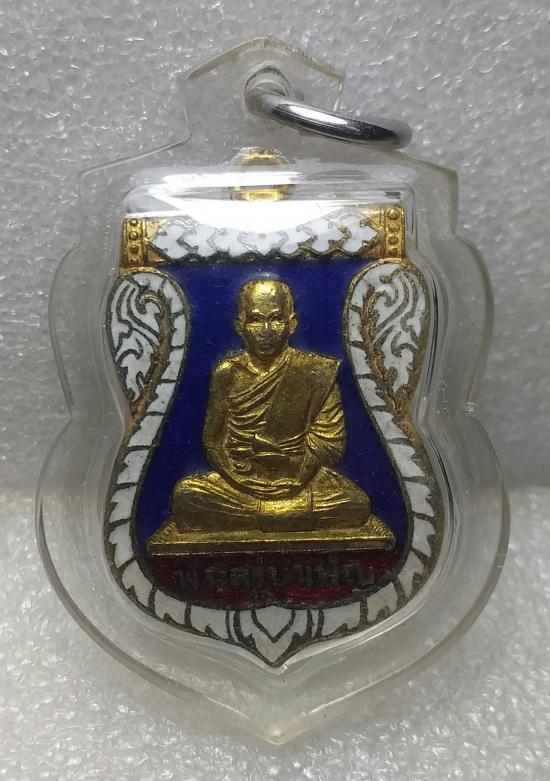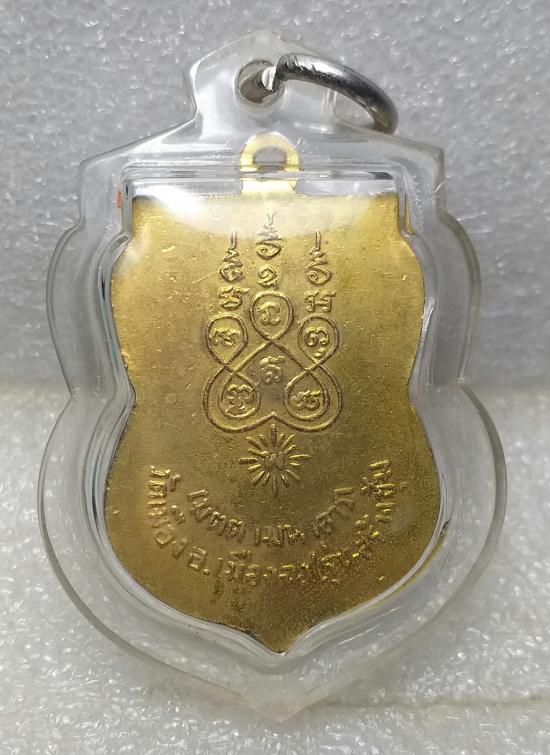เหรียญเมตตามหาลาภ พระครูบำเพ็ญ วัดเมือง อ.เมือง จ.ฉะเชิงเทรา รุ่นสร้างซุ้ม เนื้อกะไหล่ทองลงยา เลี่ยมพร้อมใช้ |
