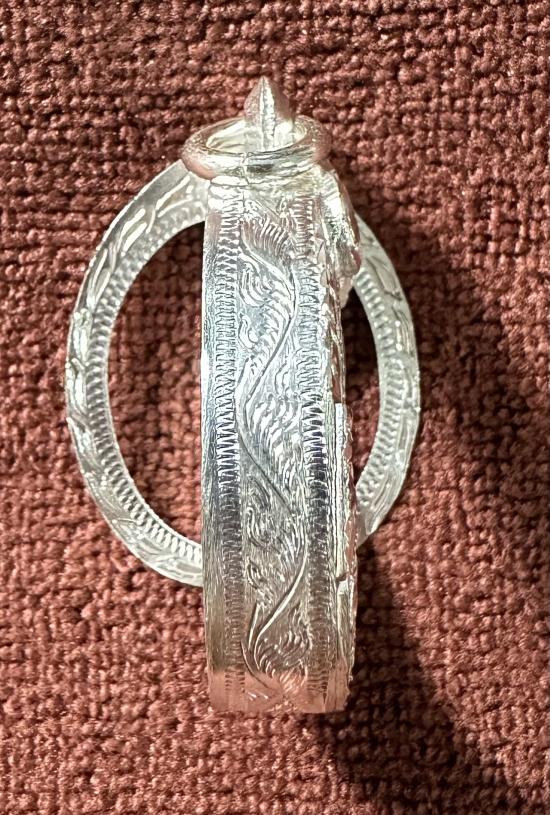 กรอบเงินแกะลายขนาดเหรียญรูปไข่เม็ดแตง ขนาดหน้าจอ 1.2*2.1cm |