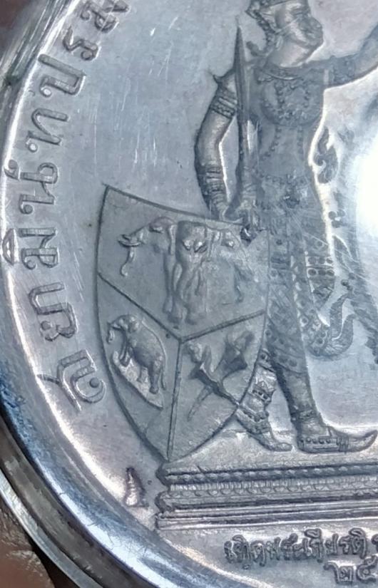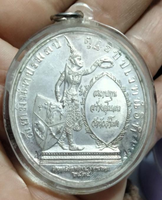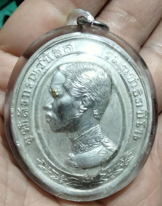 เหรียญทรงยินดี รัชกาลที่5 เนื้อเงิน พิมพ์ใหญ่จัมโบ้ ขนาด 4*4.5 ซม. นน.เงินประมาณ 43 กรัม องค์นี้เดิมแปะหน้าทองคำแท้ครับ
