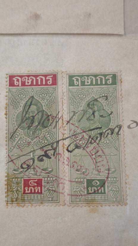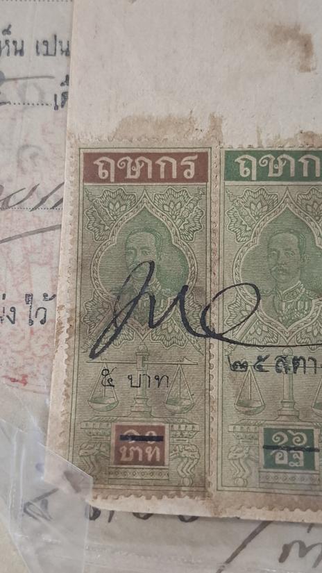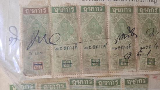 เอกสารเก่า ติดแสตมป์รัชกาลที่5, แสตมป์ฤชากร ยุค ปี 24xx มีดวง10บาทแก้เป็น5บาท,4บาท,1บาท(หายาก)