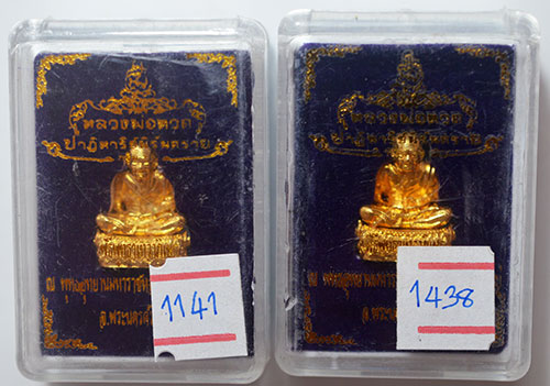 2 องค์ ลอยองค์หลวงปู่ทวด รุ่น ปาฏิหาริย์นิรันตราย กฐิน ๖๖ เนื้อบอร์อนชุบทอง แผ่นเงิน โค๊ด เลข 1438+1141