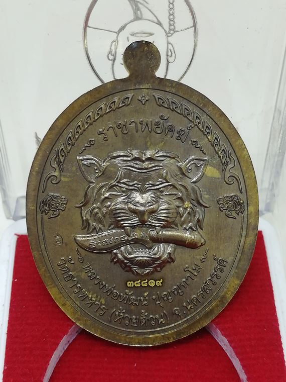 เหรียญ รุ่น ราชาพยัคฆ์ (เสือ2) หลวงพ่อพัฒน์ วัดห้วยด้วน จ.นครสวรรค์ เนื้อมหาชนวน ลงยาจีวร หมายเลข 38819