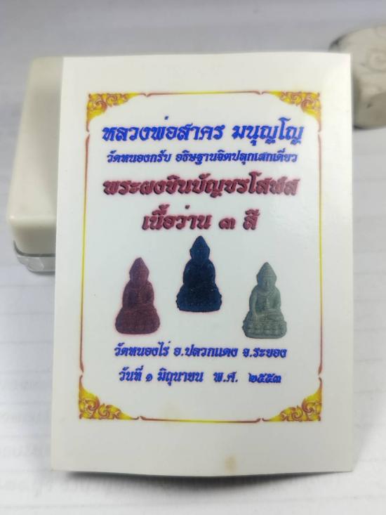 พระกริ่งผงชินบัญชร โสฬส หลวงพ่อสาคร วัดหนองกรับ ออกวัดหนองไร่ จ.ระยอง เนื้อว่านแดง พร้อมรูป ปี 2553 |
