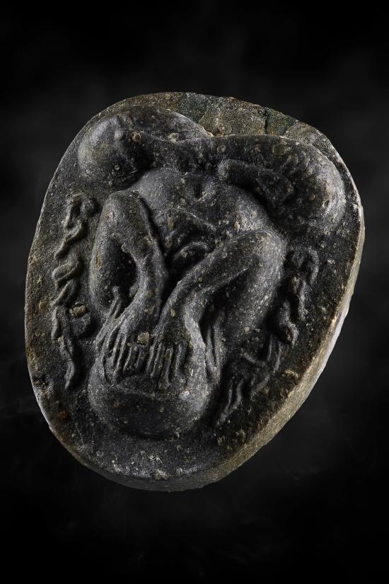 พระปิดตากนกข้างตะกรุดคู่ เนื้อใบลาน