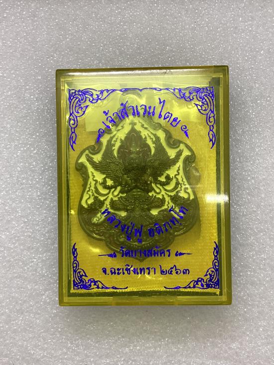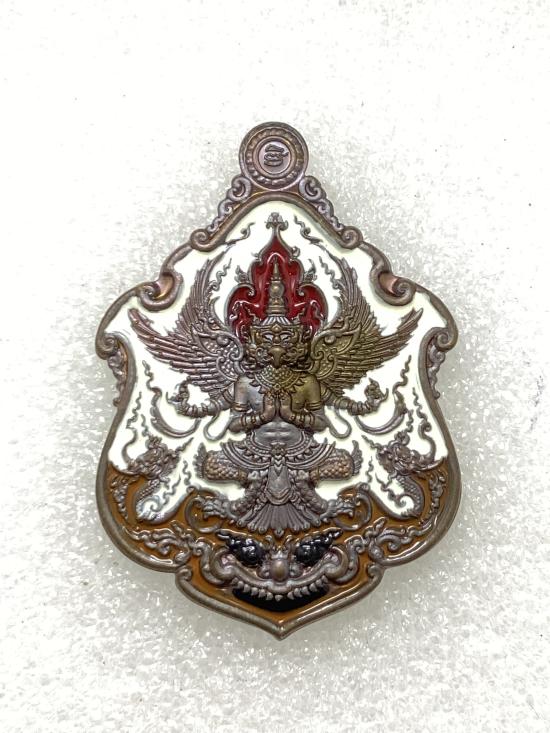 เหรียญพญาครุฑ รุ่น เจ้าสัวเวนไตย หลวงปู่ฟู อติภทฺโท วัดบางสมัคร จ.ฉะเชิงเทรา เนื้อมหาชนวน ลงยาสีขาว -แดง -ส้ม -ดำ กล่องเดิม |