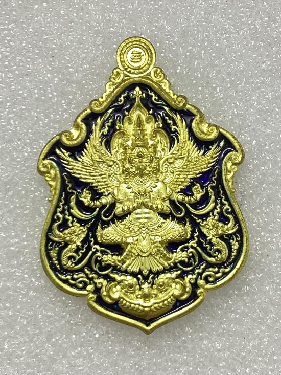 เหรียญพญาครุฑ รุ่น เจ้าสัวเวนไตย หลวงปู่ฟู อติภทฺโท วัดบางสมัคร จ.ฉะเชิงเทรา เนื้อทองทิพย์ ลงยาสีน้ำเงิน กล่องเดิม |