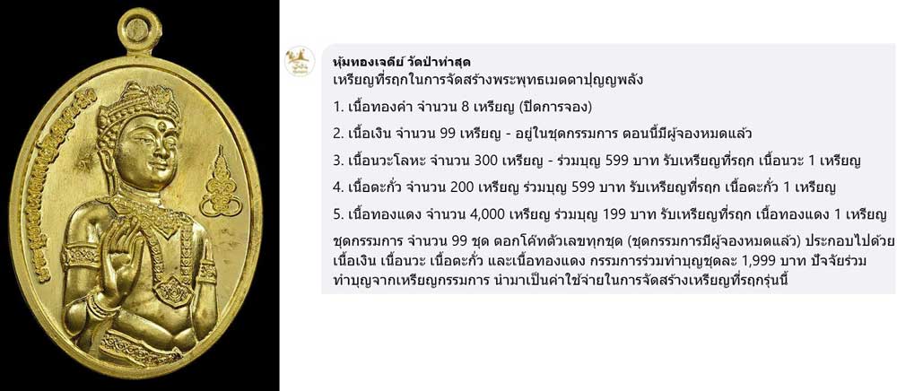 พระพุทธเมตตาปุญญพลัง วัดป่าท่าสุด เนื้อทองแดง ปี 2560 ปลุกเสกโดยสุดยอดคณาจารย์ล้านนาและสายใต้