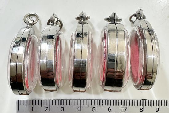 ตลับมือสองสแตนเลสรูปไข่ใส่เหรียญทั่วไป 5 ใบแบบเปิดหน้า-หลังขนาด 3.5 x 2.5 ซม. |