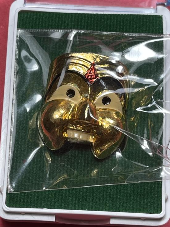 หน้ากากพรานบุญ รุ่น ล่ำซำ99 พ่อท่านพรหมวัดพลานุภาพ จ.ปัตตานี ปี2558 เนื้อทองแดงลงยา (หน้าทอง) พิมพ์ใหญ่ หลังอุดมวลสาร ฝังตะกรุด+จีวร+เกษา ตอกโค้ด |